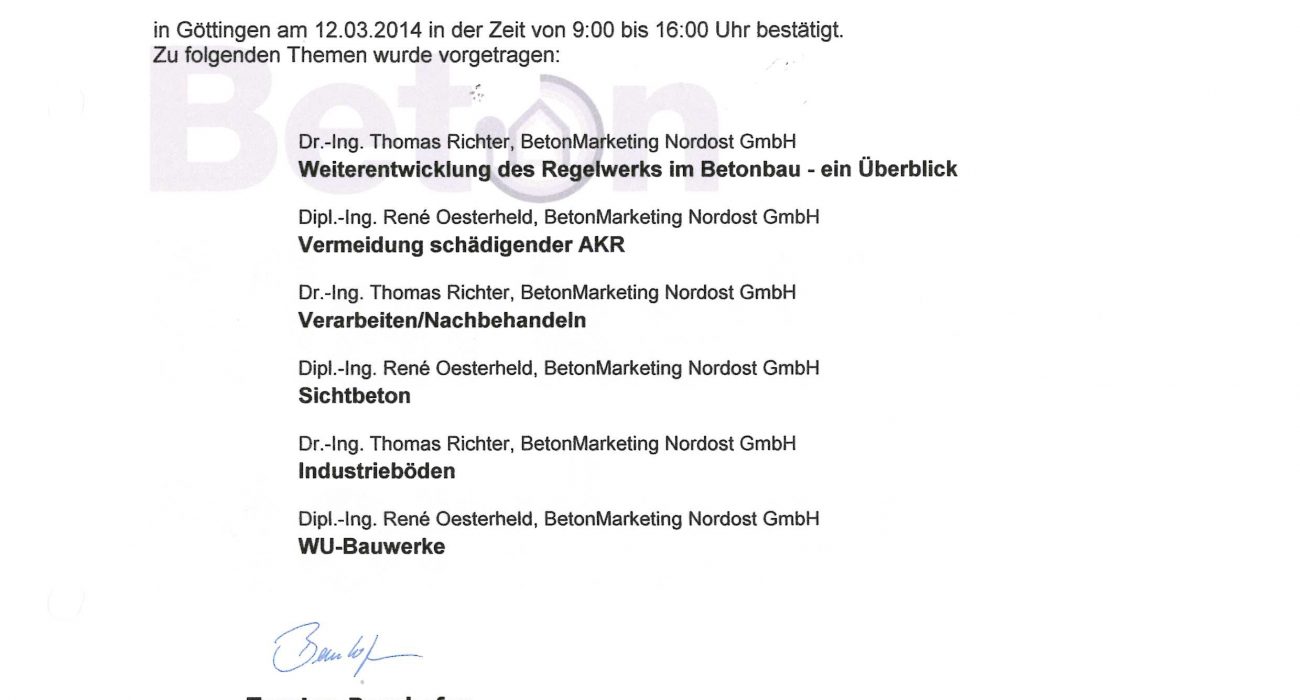 Beton- Seminar: Vermeidung von Schäden im Betonbau