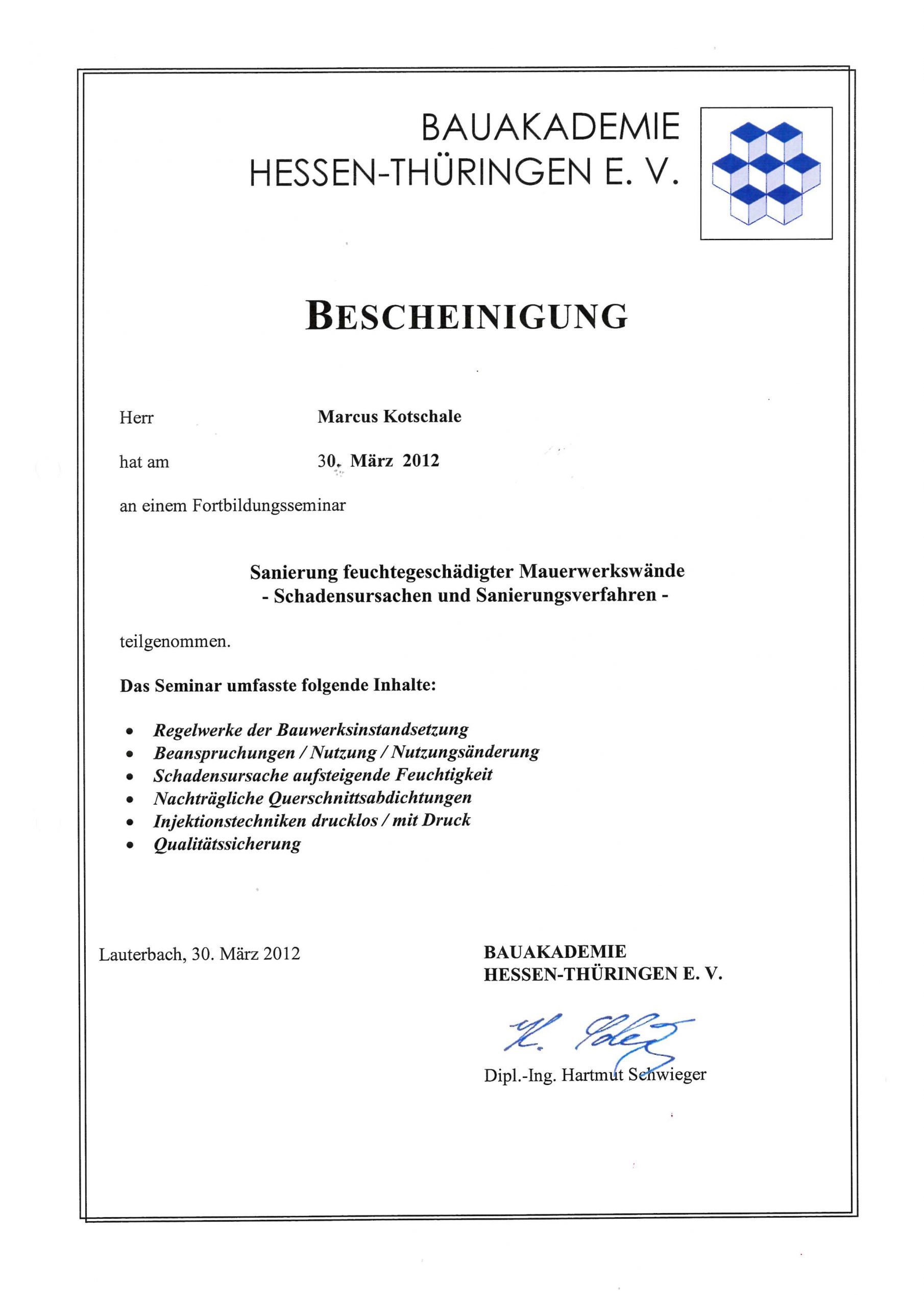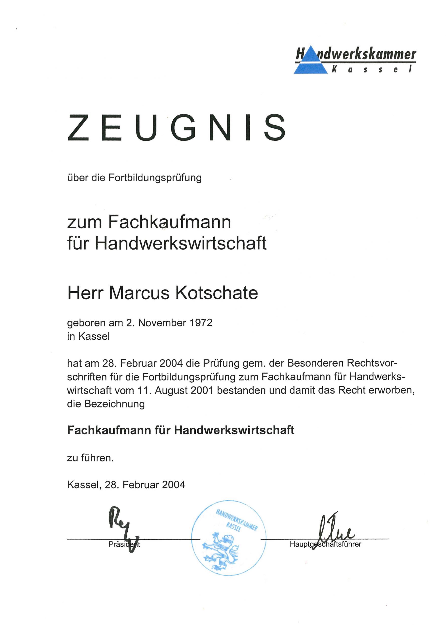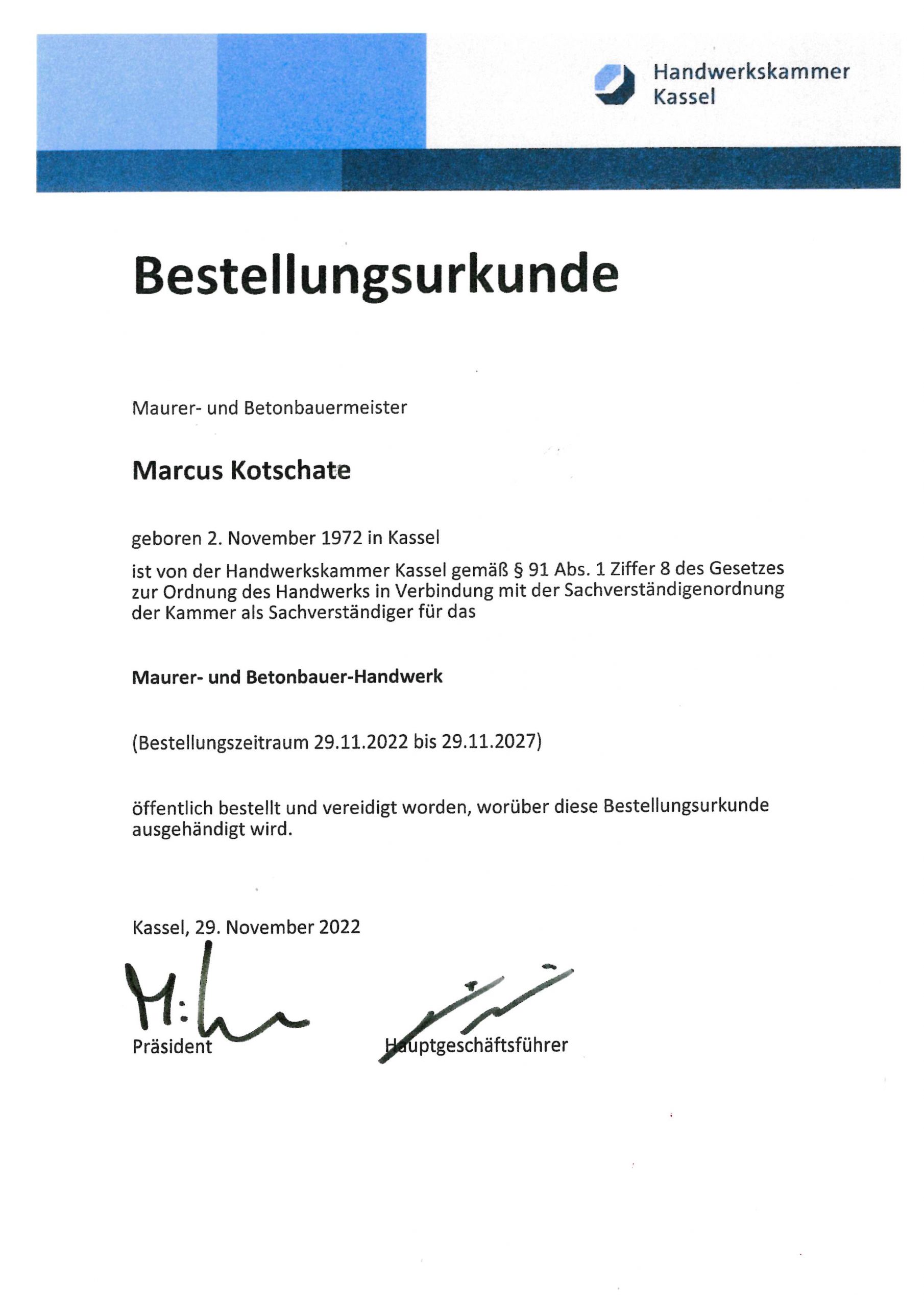 Öffentlich bestellt und vereidigter Sachverständiger der Handwerkskammer Kassel