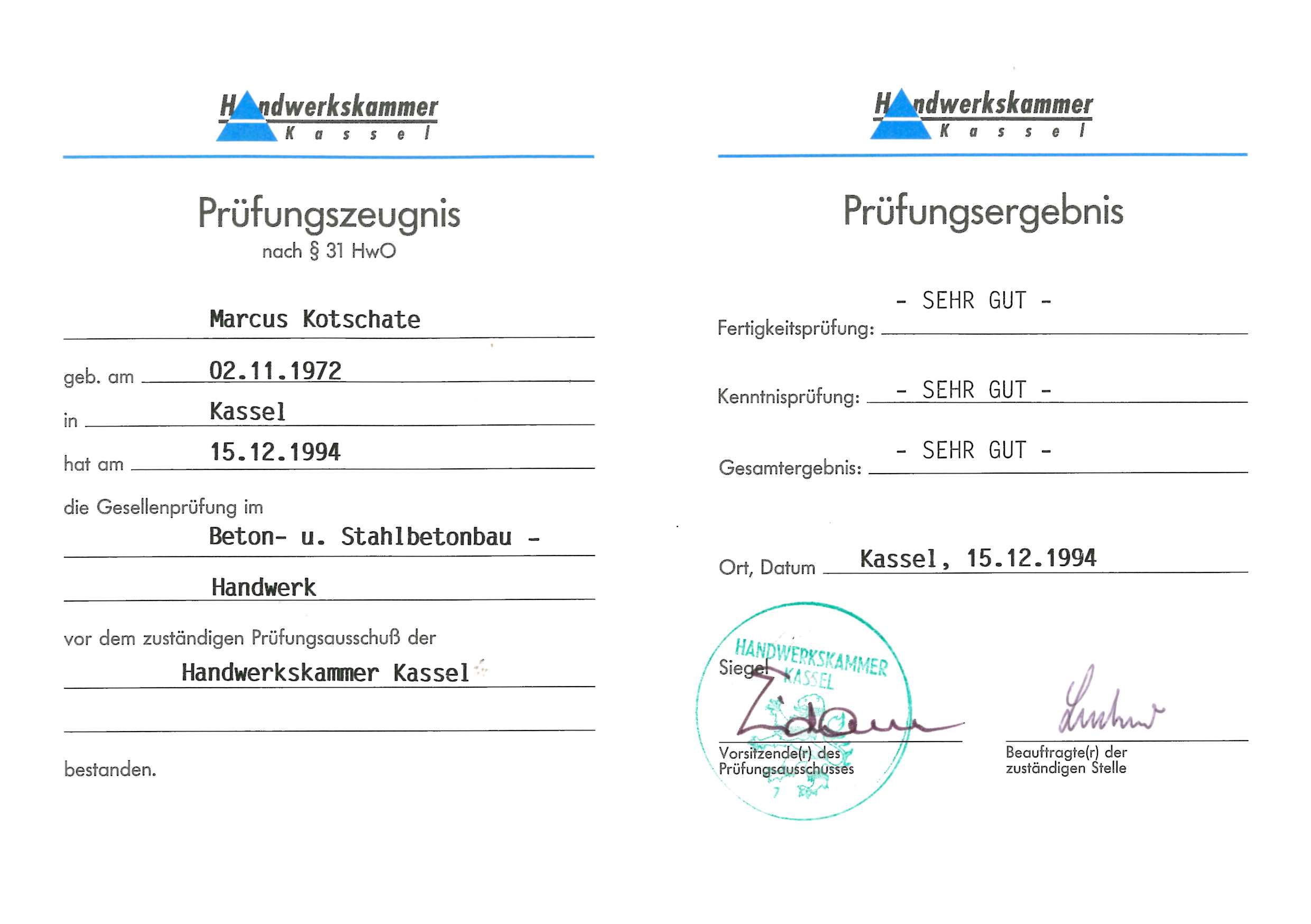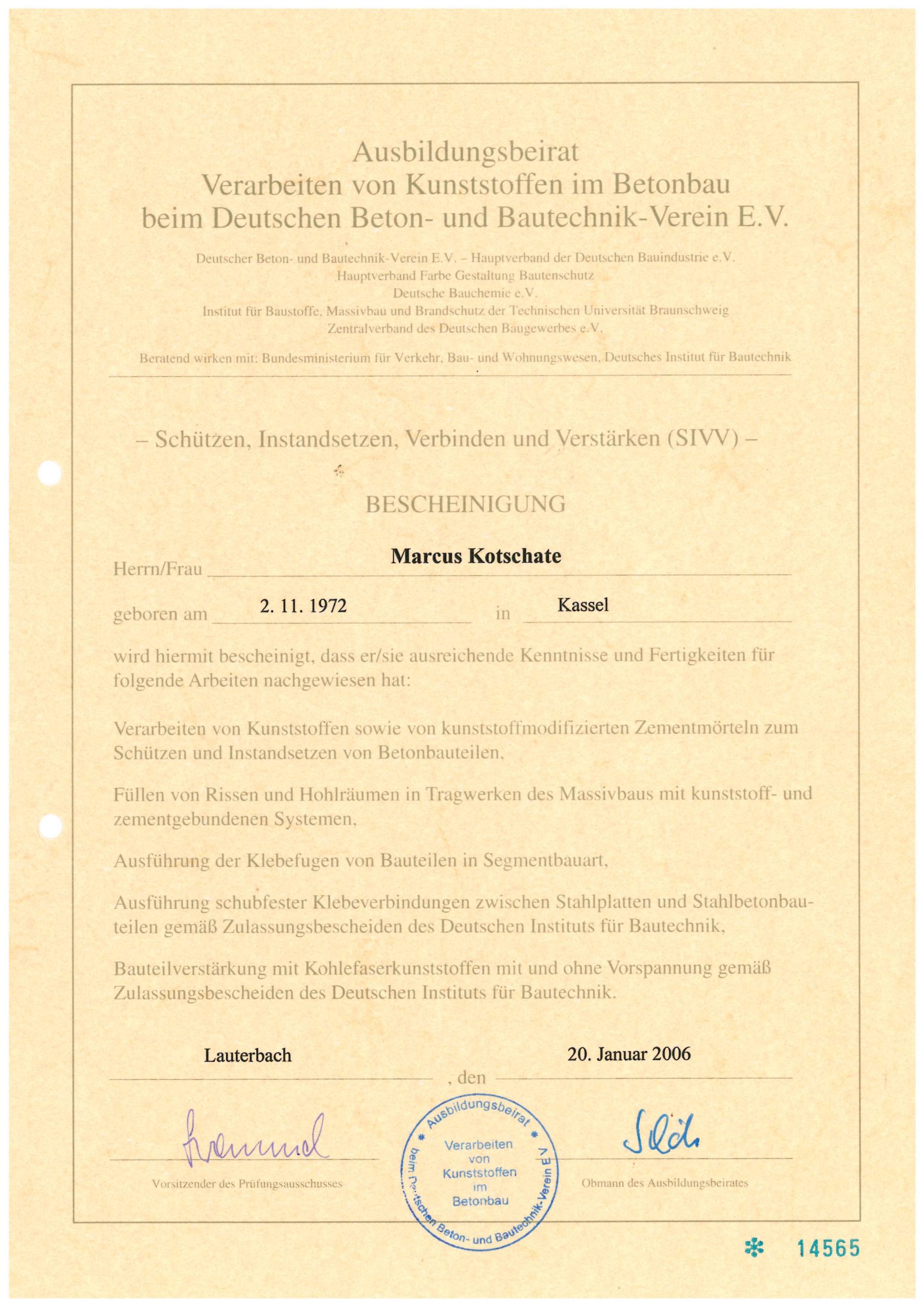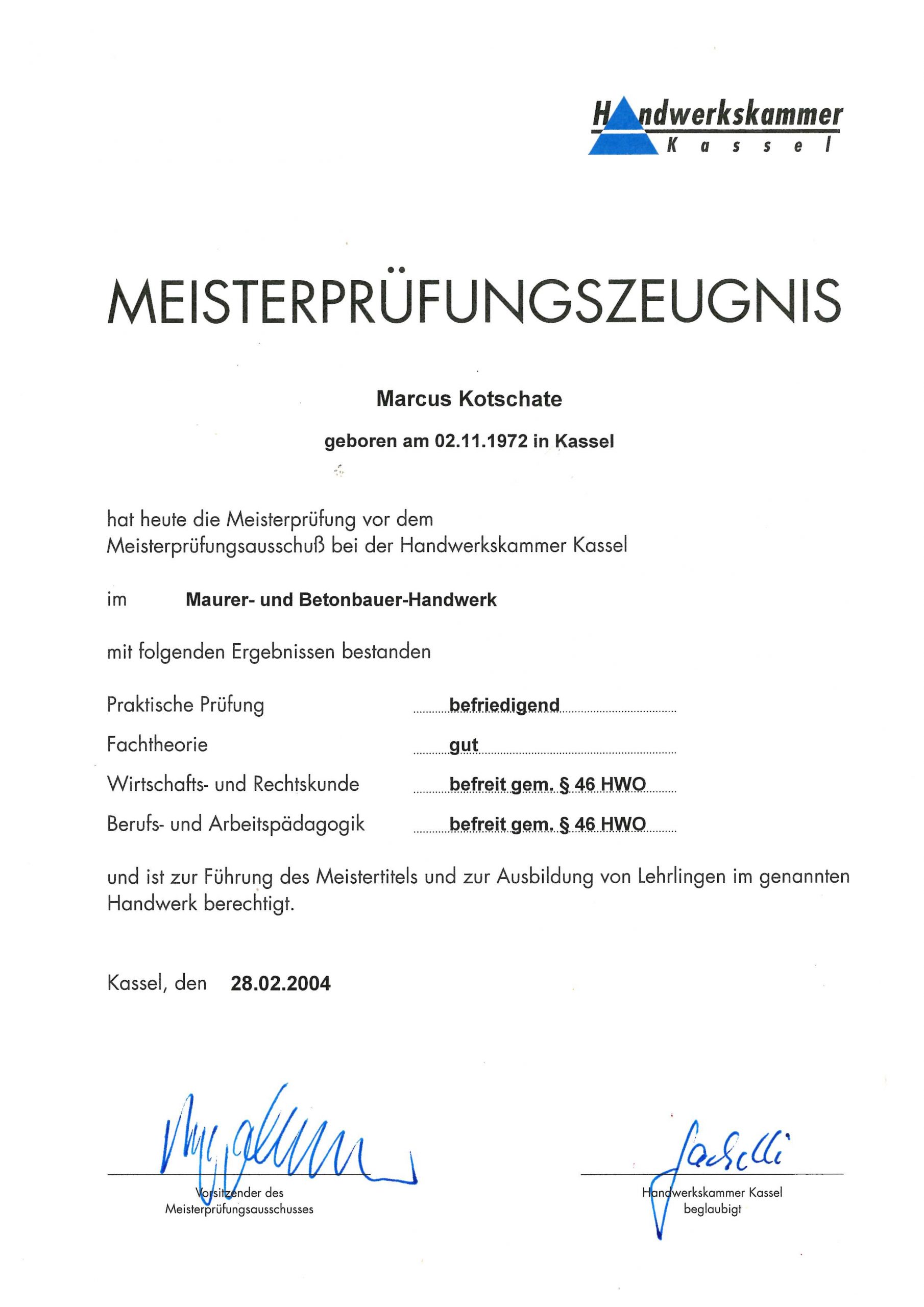 Gesellenbrief Maurer und Betonbaumeister