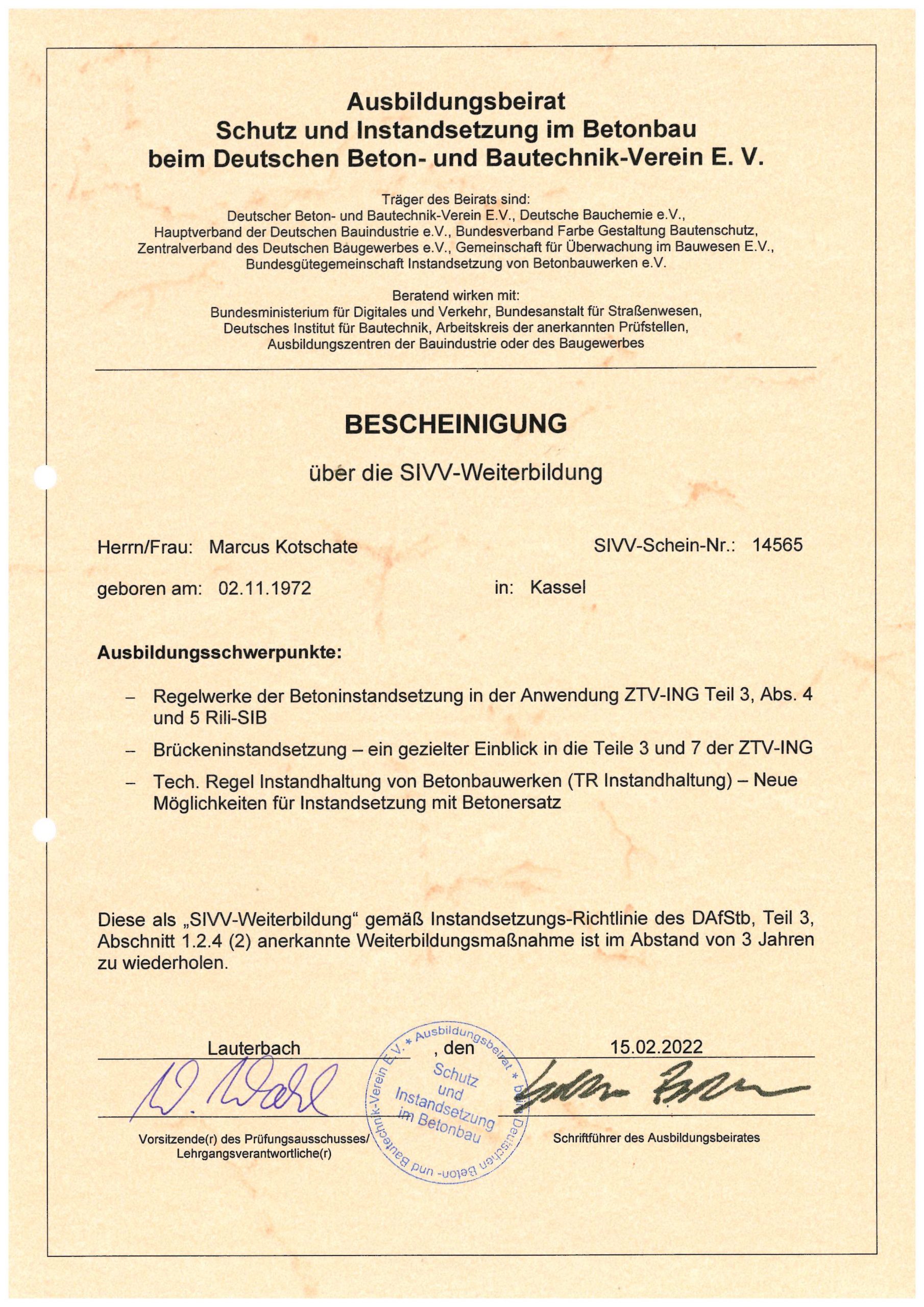 SIVV Fachkraft Fortbildung