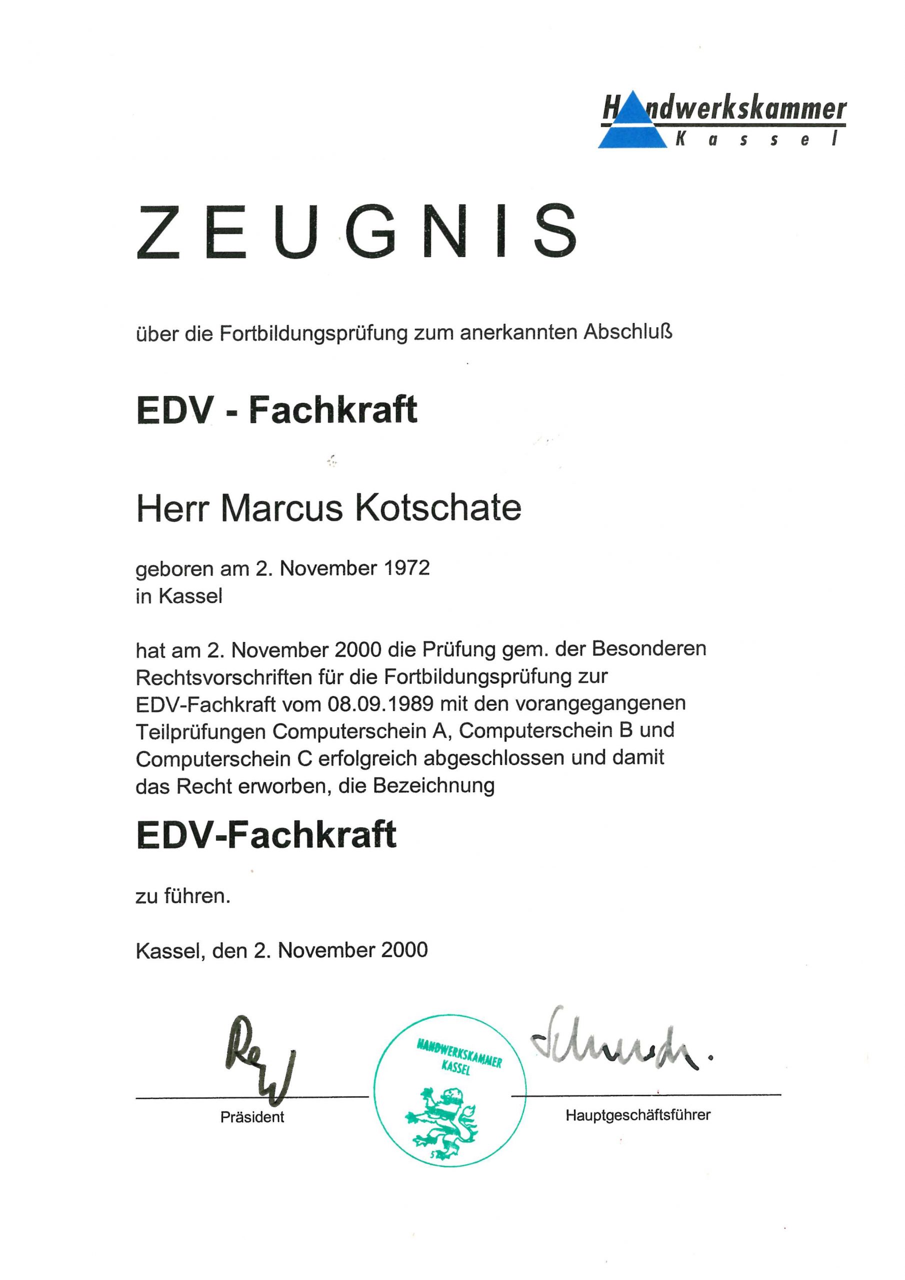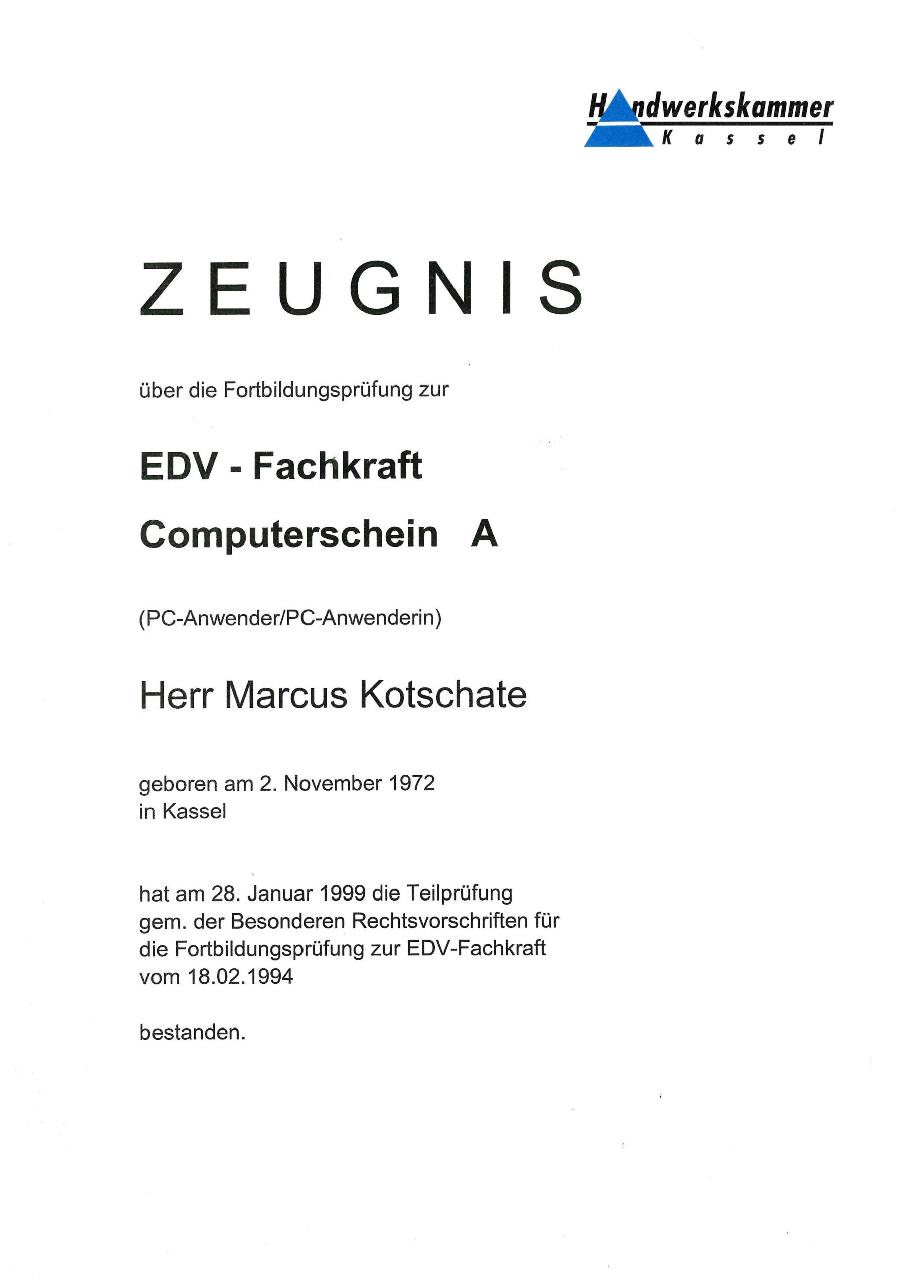 EDV- Fachkraft Computerschein A