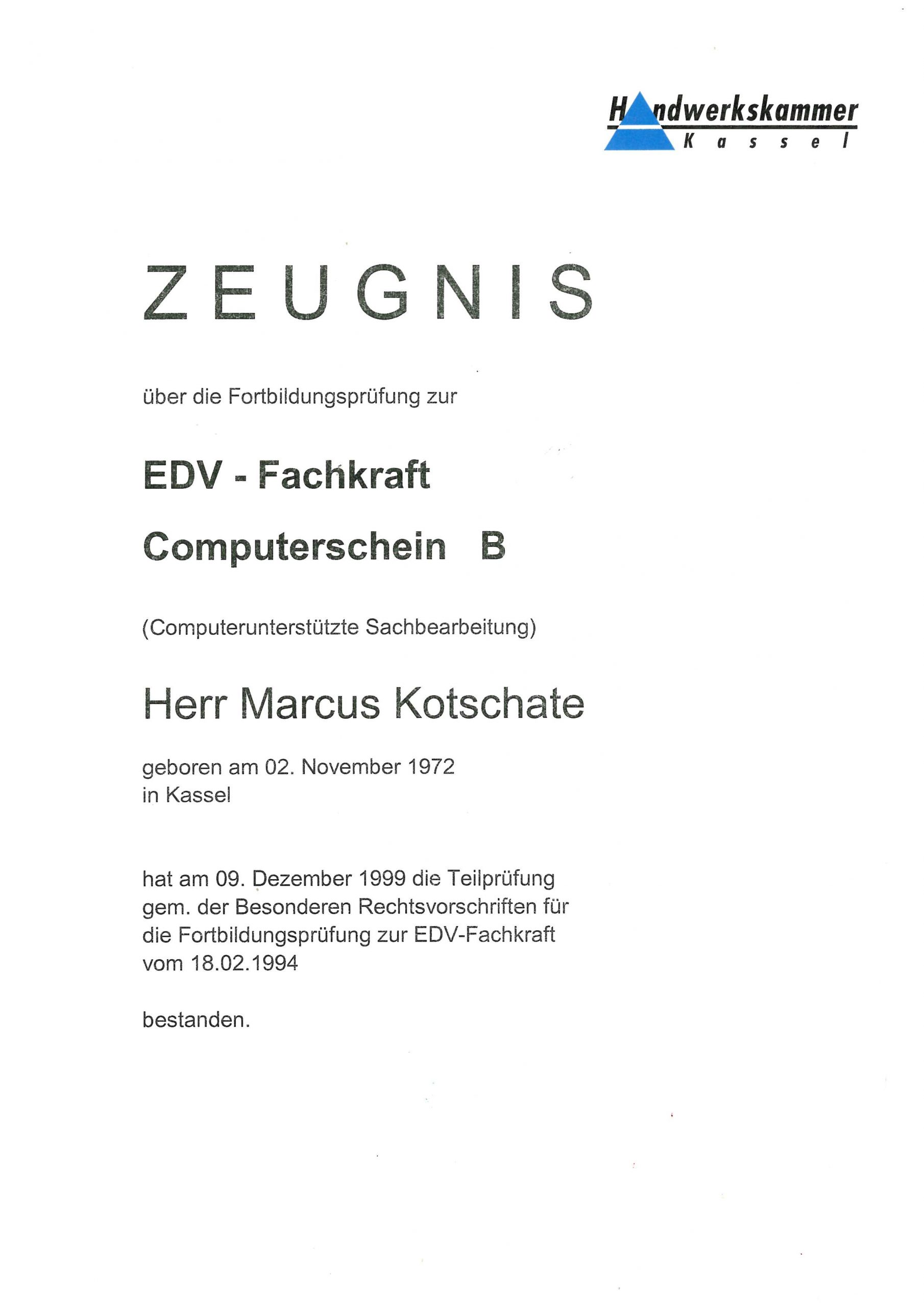 EDV- Fachkraft Computerschein B