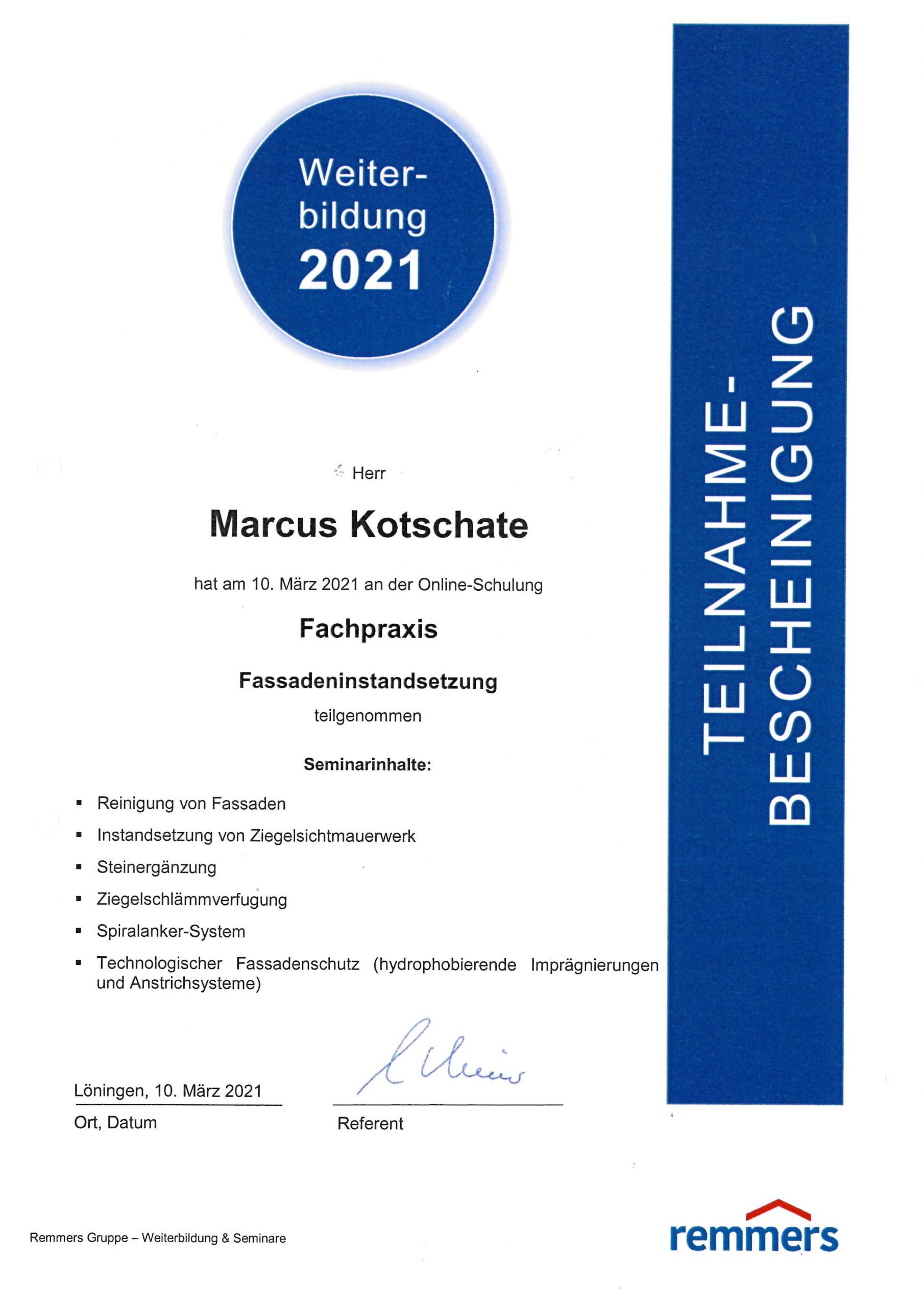 Weiterbildung- Fachpraxis Fassadeninstandsetzung