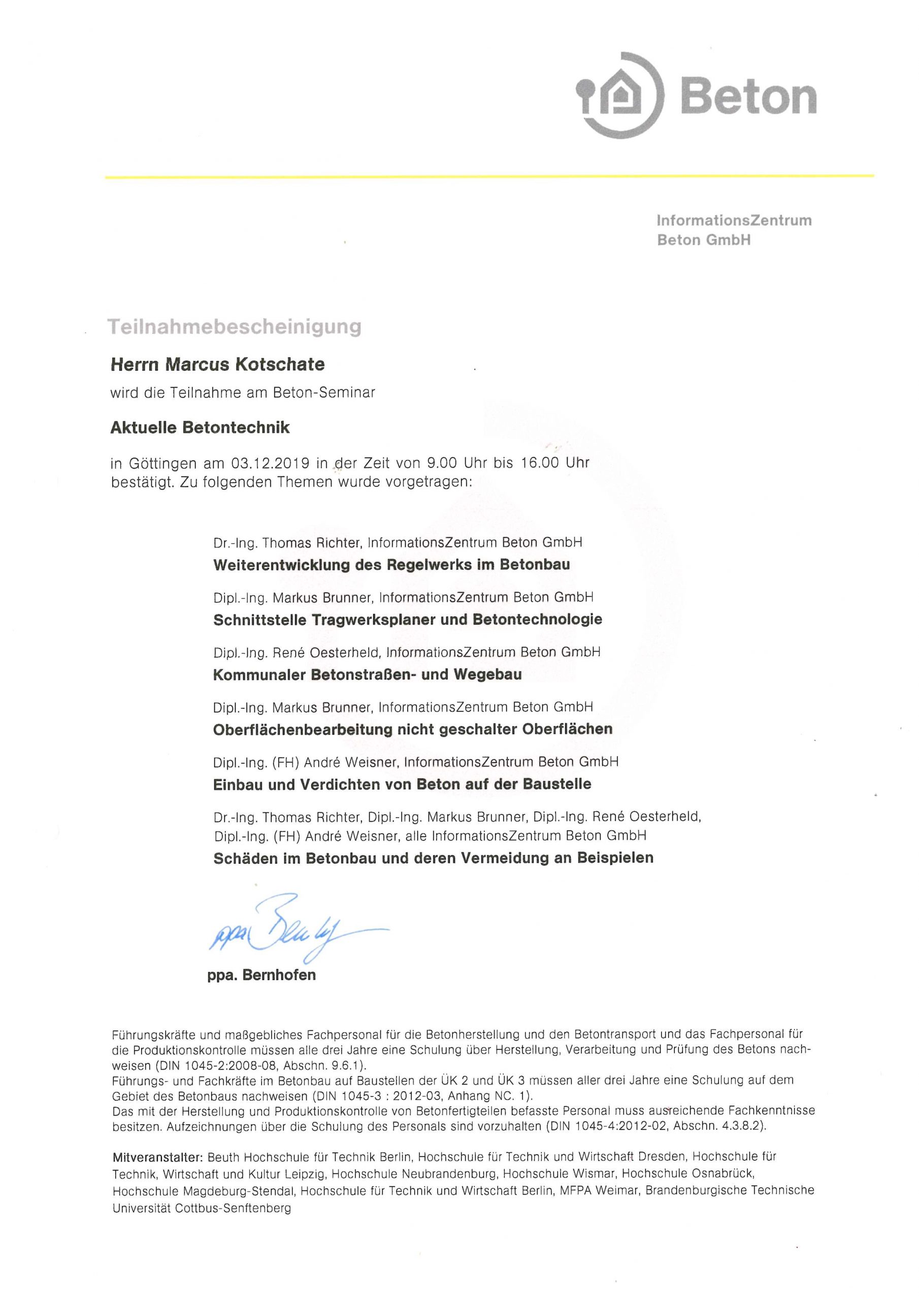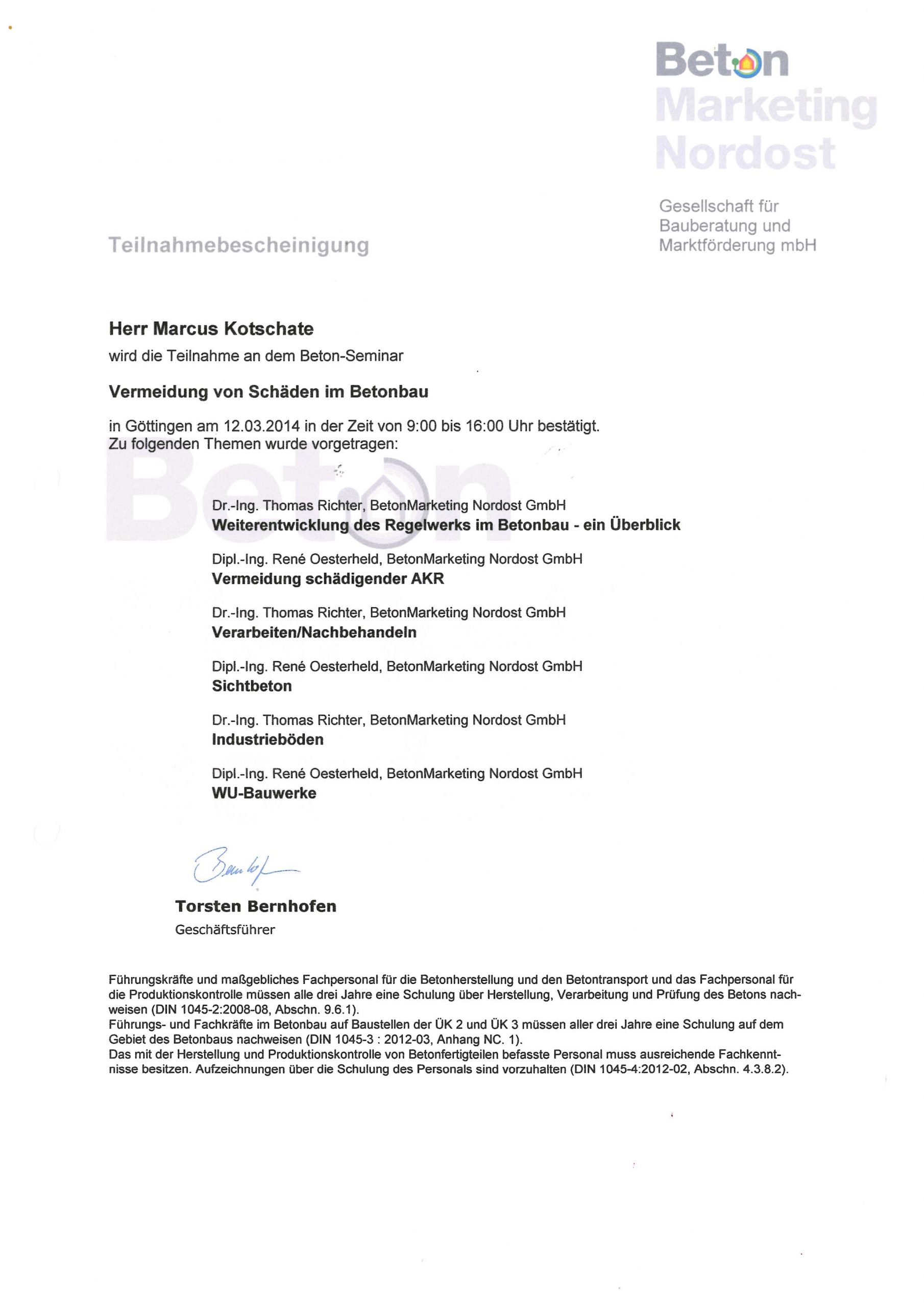 Beton- Seminar: Vermeidung von Schäden im Betonbau