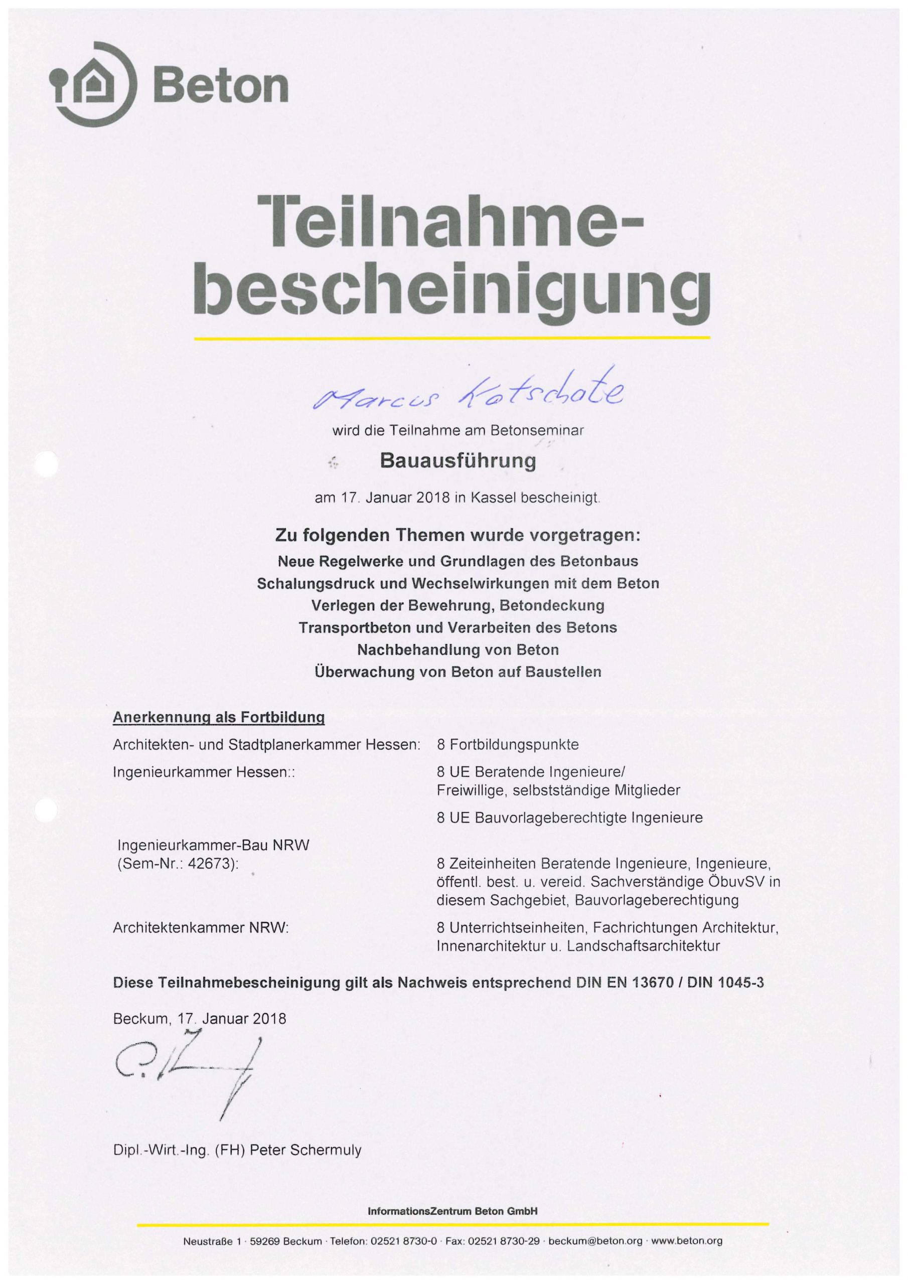 Beton- Seminar: Bauausführung