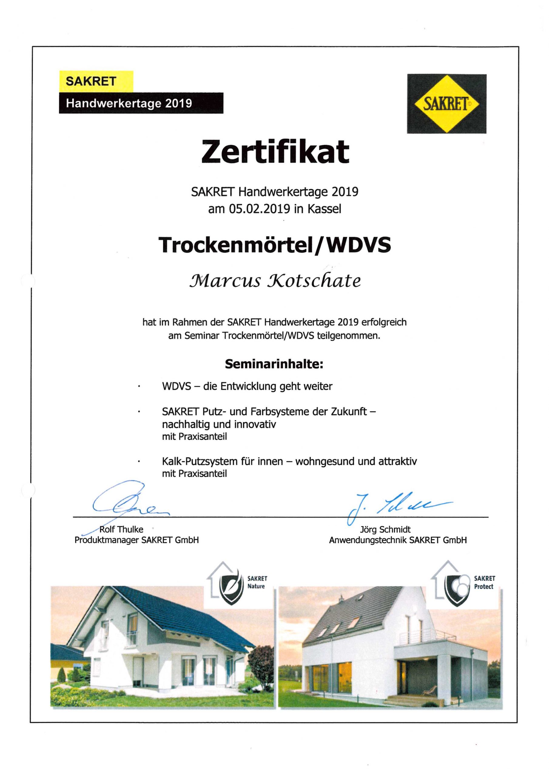 Zertifikat: Trockenmörtel/ WDVS