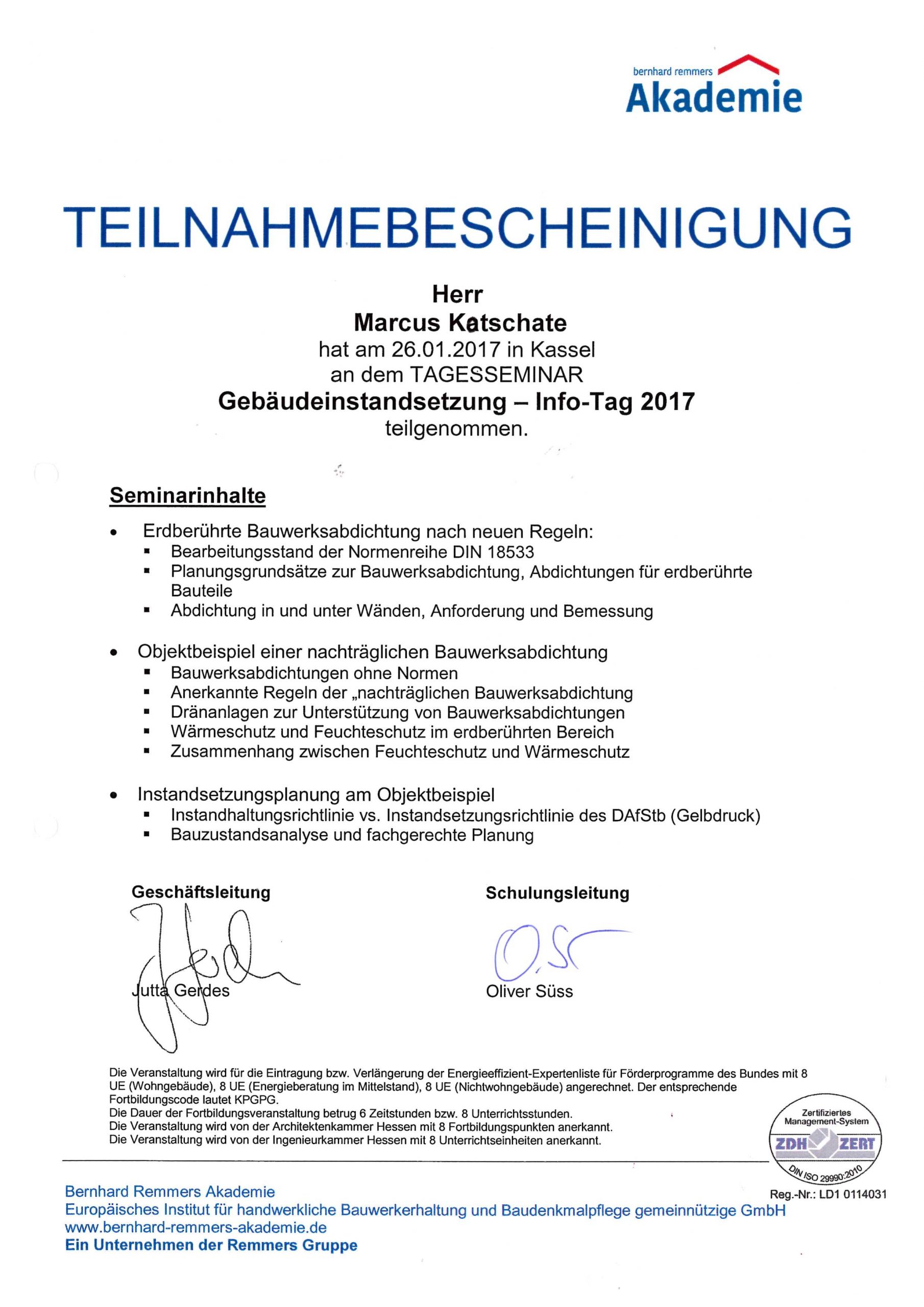 Seminar: Gebäudeinstandsetzung